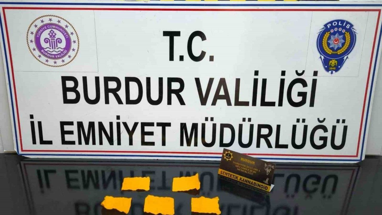 Burdur Cumhuriyet Başsavcılığı koordinesinde İl Emniyet Müdürlüğü ekipleri tarafından uyuşturucu madde ticareti yapan ve kullanan şahısların deşifresine yönelik çalışmalar kapsamında, 26 Mayıs tarihinde il merkezinde durdurulan S.E. isimli şüphelinin üzerinde ve eşyalarında yapılan aramalarda, bin 520 kullanımlık sentetik kannabinoid enjekte edildiği değerlendirilen kâğıt parçası ele geçirildi.