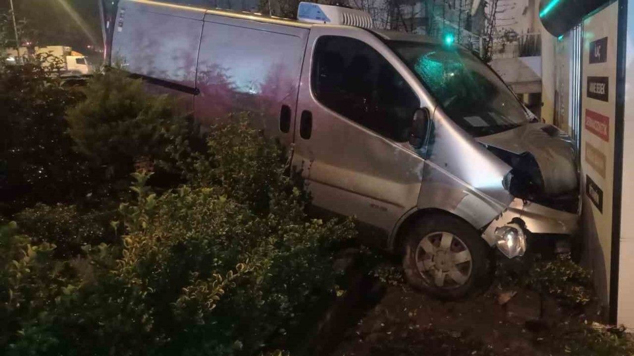 Bursa’da otomobille çarpışan hafif ticari araç yoldan çıkarak bir eczanenin bahçesine daldı. O anlar anbean güvenlik kamerasına yansıdı.