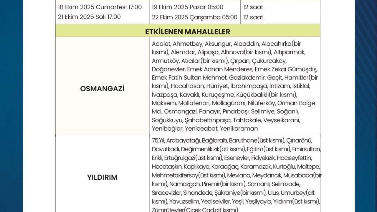 BUSKİ Genel Müdürlüğü, iklim değişikliği neticesinde ortaya çıkan kuraklık sonucu su kaynaklarının azalması ve baraj doluluk oranlarının kritik seviyeye düşmesi sebebiyle 16 Ekim-22 Ekim tarihleri arasındaki yapacağı su kesintilerini duyurdu.