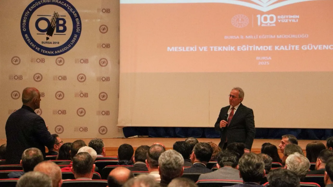 Mesleki ve Teknik Anadolu Liselerinde kaliteyi artırmak ve sürdürülebilir iyileştirme süreçlerini güçlendirmek amacıyla Meslekî ve Teknik Eğitim Genel Müdürlüğü koordinasyonunda başlatılan Mesleki ve Teknik Eğitimde Kalite Güvence Sistemi ve İl Millî Eğitim Müdürlüğünce başlatılan Kurumsal Performans İzleme Sistemine yönelik bilgilendirme toplantısı düzenledi.BURSA (İGFA) - Bursa İl Millî Eğitim Müdürü Dr. Ahmet Alireisoğlu’nun katılımıyla, Nilüfer ilçesi Otomotiv Endüstrisi İhracatçıları Birliği Mesleki ve Teknik Anadolu Lisesi ev sahipliğinde gerçekleştirilen toplantıya, il genelindeki tüm Mesleki ve Teknik Anadolu Liselerinin okul müdürleri ve kalite temsilcileri katıldı.