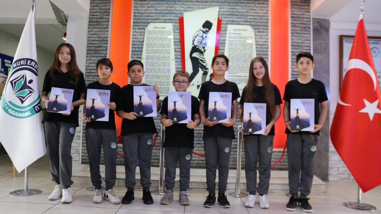 Nuri Erbak Ortaokulu öğretmenleri ve öğrencileri tarafından hazırlanan okul dergisi "Nefes", beşinci sayısıyla okurlarıyla buluştu. Hem içerik kalitesiyle hem de özgün tasarımıyla büyük beğeni toplayan “Nefes” Bursa eğitim camiasında da ilgiyle karşılandı.BURSA (İGFA) - Nuri Erbak Ortaokulu öğretmenleri ve öğrencileri Bursa İlçe Müdürü Mustafa Sevinç ve şube müdürlerini ziyaret ederek Nefes’in yeni sayısını takdim etti.