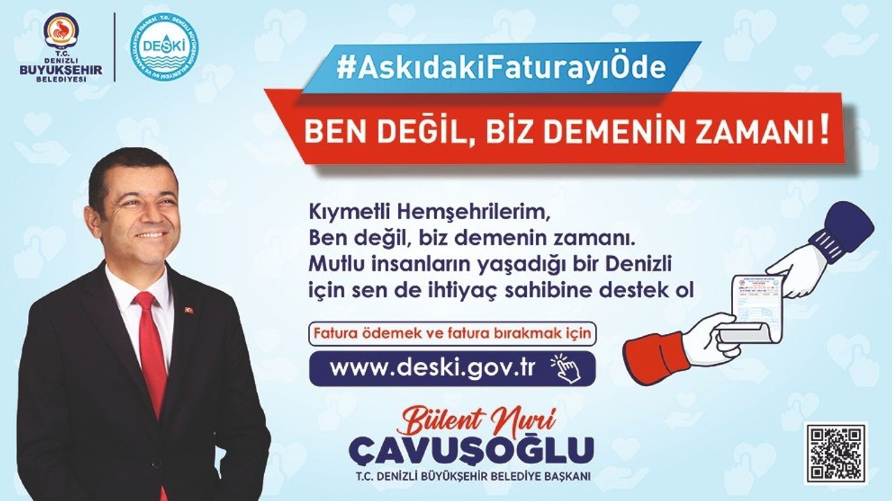 “Denizli olarak her zaman dayanışmayı ve birlikteliği ön planda tutmuş bir şehiriz. Bugün ekonomik şartlar nedeniyle zorluk yaşayan hemşehrilerimiz var. İşte bu noktada toplumumuzun yardımlaşma ruhunu harekete geçirecek ‘Askıda Fatura’ uygulamasını hayata geçiriyoruz. Kampanyamız, ‘Ben değil, biz’ demenin zamanıdır diyerek mutlu insanların yaşadığı bir Denizli için ihtiyaç sahibi vatandaşlarımız ile yardımseverlerimizi bir araya getiriyor. Şeffaflık ve gizliliği esas aldığımız bu uygulamada, yardımı yapan ve alan kişiler birbirini görmeden destek sağlanacak. Toplumsal dayanışmamızın en güzel örneklerinden birini daha yaşatacak bu çalışmaya tüm hayırsever hemşehrilerimi katkı sunmaya davet ediyorum.”
