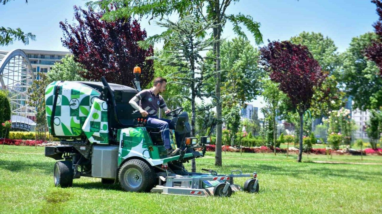 ‘Yeşil Bursa’ kimliğini kente tekrar kazandırmak için çalışmalara aralıksız devam eden Büyükşehir Belediyesi, bir yandan kente yeni yeşil alanlar kazandırıyor diğer yandan mevcut park ve yeşil alanların bakımlarını sürdürüyor. Park Bahçeler Dairesi Başkanlığı ve Tarım Peyzaj AŞ iş birliğinde yürütülen çalışmalarda, 674 personel tarafından toplam 93 park ve 9 milyon metrekarelik yeşil alanda temizlik, çim biçme, tanzim ve bakım işlemleri yürütülüyor. Yeşil alanların daha temiz ve kullanışlı hale gelmesi için mesai harcayan ekipler, Bursalıların daha konforlu ve güvenli alanlarla vakit geçirebilmeleri için yaz boyunca çalışmalarını sürdürecek.