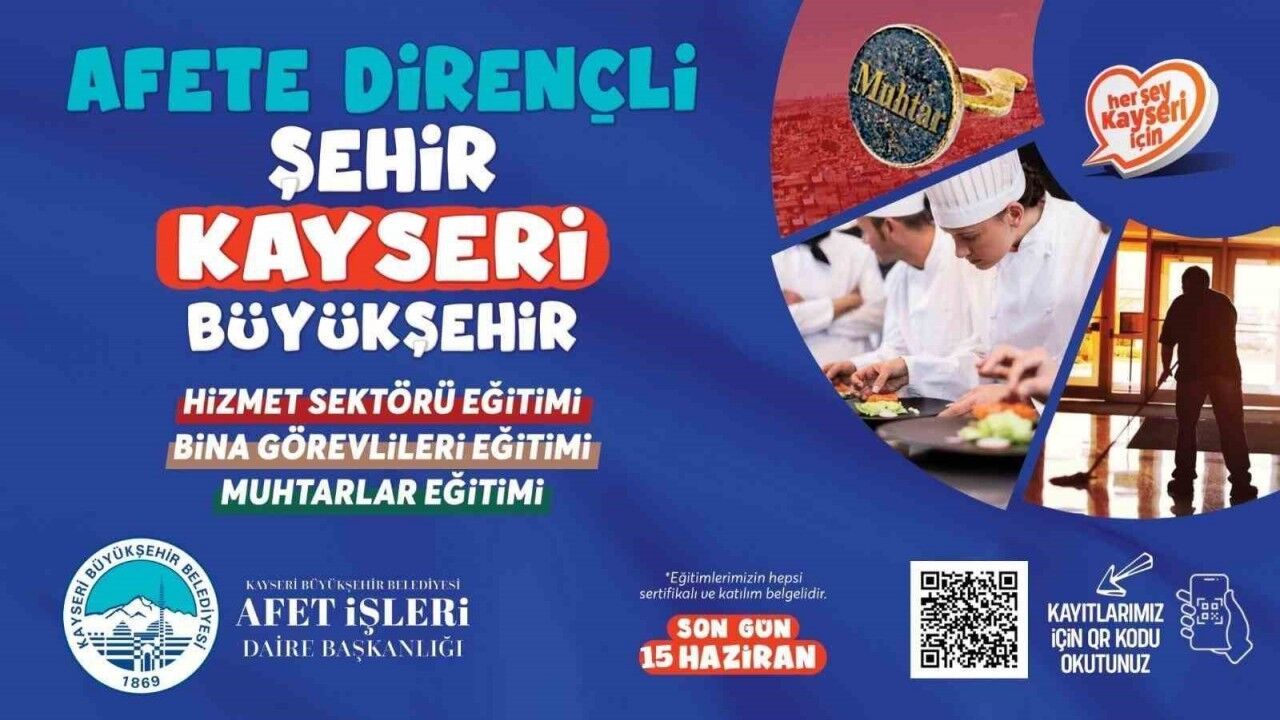 Kayseri Büyükşehir Belediyesi, afet ve acil durumlara karşı toplumun bilinçlenmesi ve müdahale kapasitesinin arttırılması amacıyla başlattığı eğitim programlarının kayıt süresini 15 Haziran’a kadar uzattı. Üç farklı sektöre yönelik hazırlanan eğitim paketleriyle, afet anında daha güvenli ve hazırlıklı bir toplum hedefleniyor.