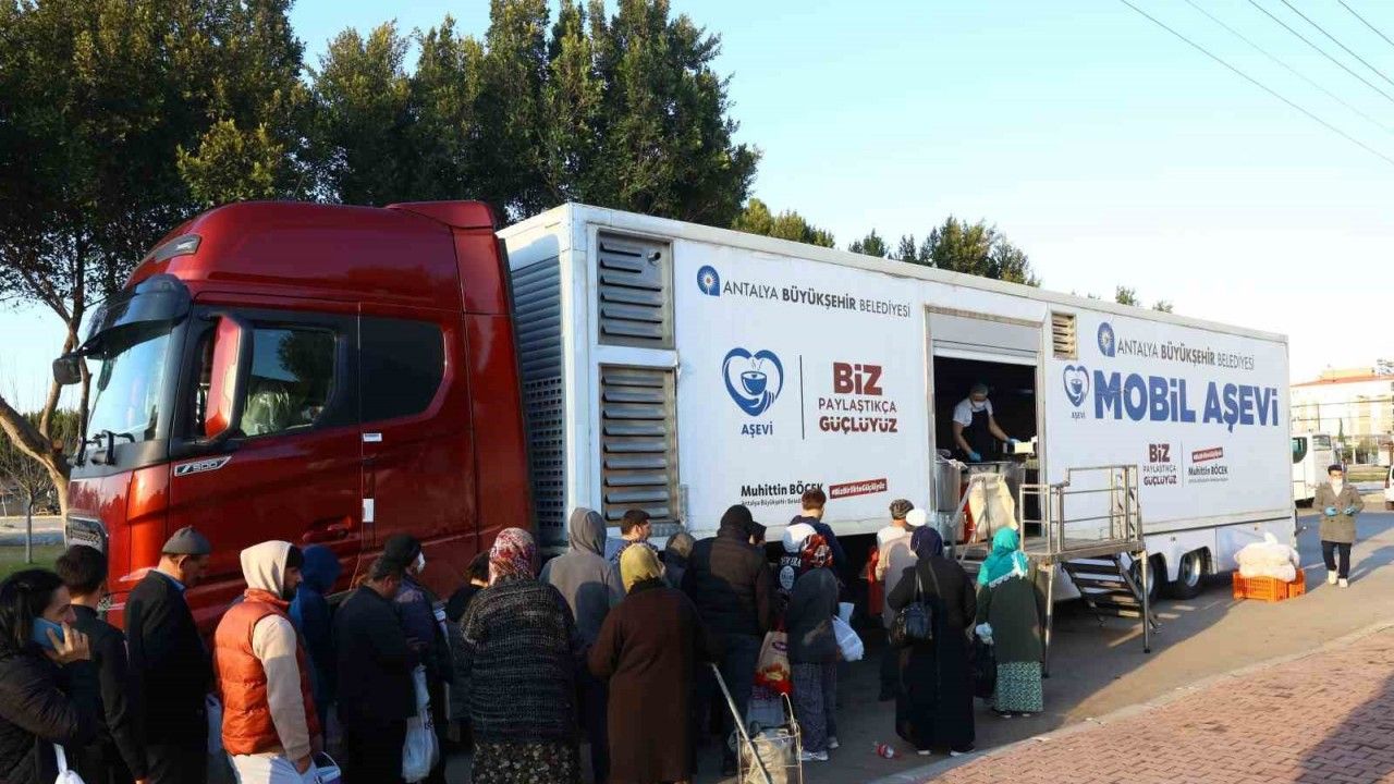 Büyükşehir Belediyesi mobil aşevi tırında, iftar saati öncesinde bin kişiye dört çeşit yemek ikram edildi. Vatandaşlar, yemeklerini alarak evlerinde iftar saatinin gelmesini bekledi. Akşam ezanın okunmasıyla birlikte Ramazan ayının ilk oruçları açıldı. Antalya Büyükşehir Belediyesi Ramazan ayı boyunca Antalya’nın farklı mahallerinde yemek dağıtımlarını sürdürecek. Büyükşehir Belediyesi 2 Mart Pazar günü Kepez ilçesi Güneş Mahallesi’nde, 3 Mart Pazartesi günü ise Kepez ilçesi Aydoğmuş Mahallesi’nde vatandaşlara sıcak yemek ikramında bulunacak.