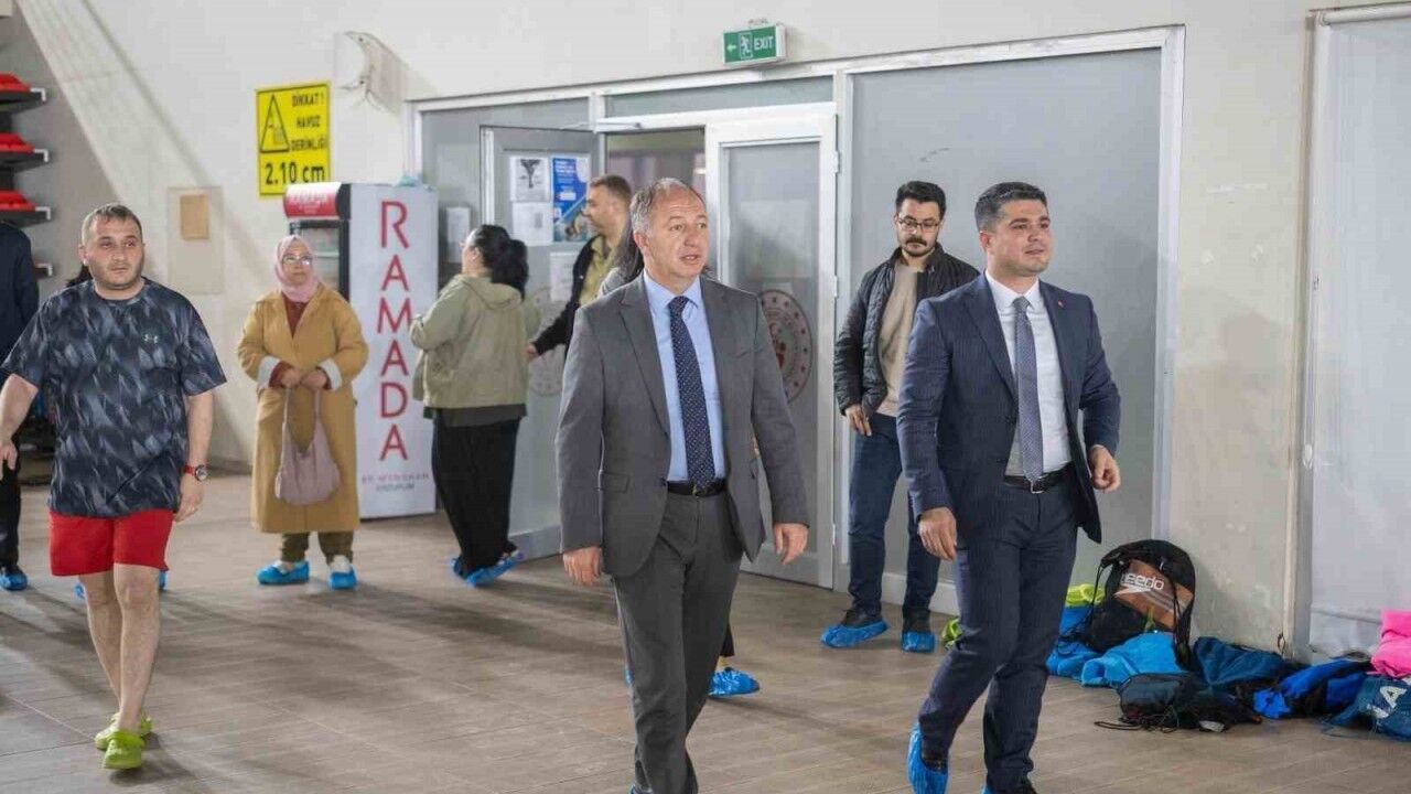 Erzurum Gençlik ve Spor İl Müdürü Levent Çakmur ile Spor Hizmetleri Müdürü Erdoğan Dönmez, yenilenen yüzü ile yerli ve yabancı sporcuların ilgi odağı olan tam olimpik yüzme havuzunu ziyaret ederek Mersin’den madalyalarla dönen yüzücü ve antrenörlere baklava ikram etti.