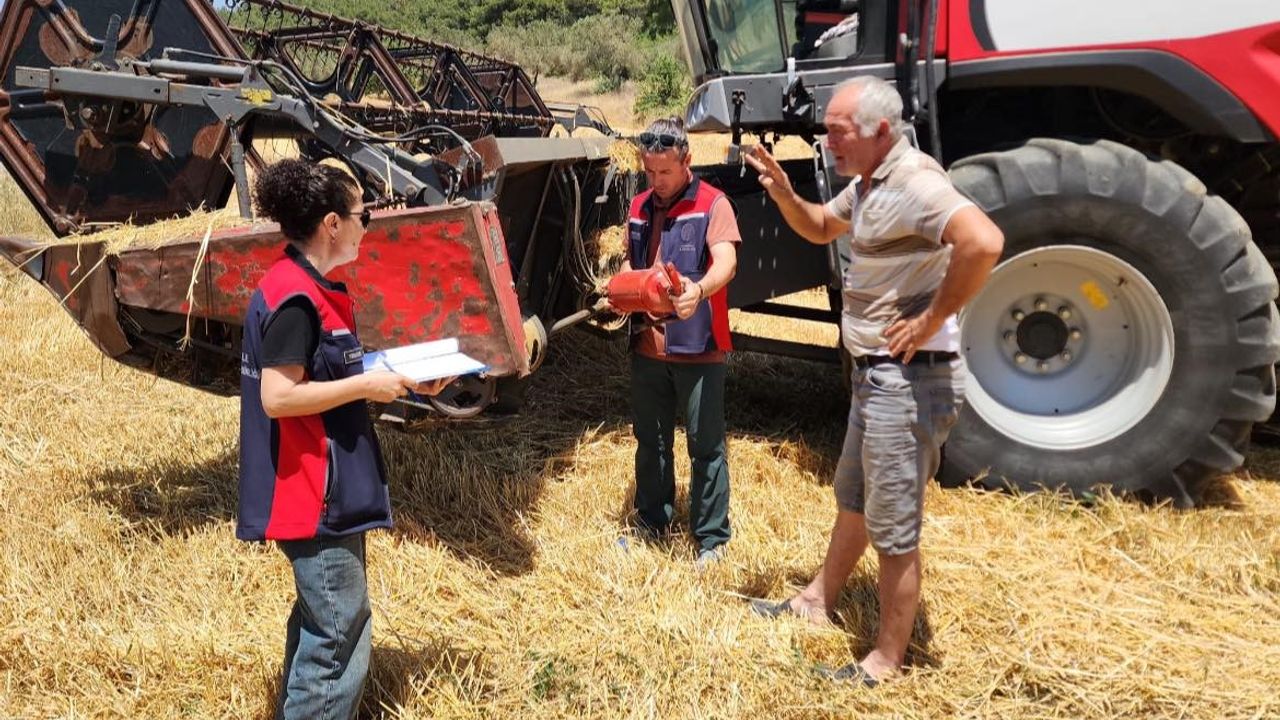 Çanakkale’de hububat hasadının devam ettiği bölgelerde İl Tarım ve Orman Müdürlükleri teknik ekiplerince anız ve orman yangınlarına karşı biçerdöverler, balya makinaları ve ot biçme makinalarının kontrolleri aralıksız devam ediyor. Aynı zamanda rekolte tespit çalışmaları da yürütülüyor. Anız ve orman yangınlarına karşı; üreticilerin, biçerdöver, balya makinası ve ot biçme makinaları kullanıcıları uyarılarak almaları gereken tedbirler konularında bilgilendiriliyor. Köy muhtarları ve üreticiler, orman yangınlarını önleme konusunda büyük öneme sahip olan ormana bitişik hububat tarlalarında hasattan sonra; anızlardan arındırılmış 5-10 metre genişliğinde pullukla sürülmüş bant oluşturmaları konusunda bilgilendiriliyor. Kontrollerde, zorunlu olarak bulundurulması gereken biçerdöver operatörlerinin G sınıfı (Biçerdöver) Sürücü Belgesi veya Biçerdöver Operatör Belgesi ile tarihi geçmemiş 2 adet en az 6 kilogramlık yangın söndürücü cihaz bulunup bulunmadığı denetleniyor. Bulunmayan biçerdöverlerin çalışmasına izin verilmiyor. Denetimler sırasında dane kayıplarına karşı teknik ekipler tarafından kontroller yapılarak, bu konuda üreticiler bilgilendirilip verim kaybının önüne geçilmeye çalışılıyor.