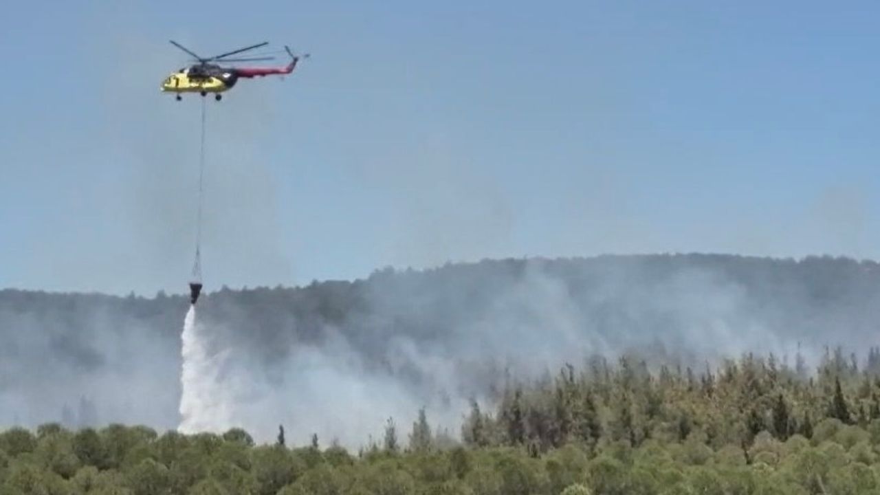 Çanakkale’de çıkan orman yangınını kontrol altına almak için Orman Bölge Müdürlüğü ekipleri havadan ve karadan müdahale ediyor.