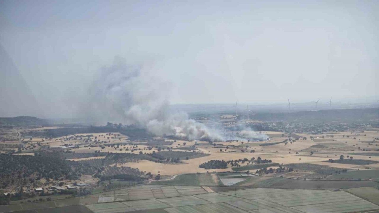 Çanakkale’nin Ezine ilçesinde tarım arazisinde başlayan yangın, Çanakkale Orman Bölge Müdürlüğü ekiplerinin havadan ve karadan müdahalesiyle kontrol altına alındı.