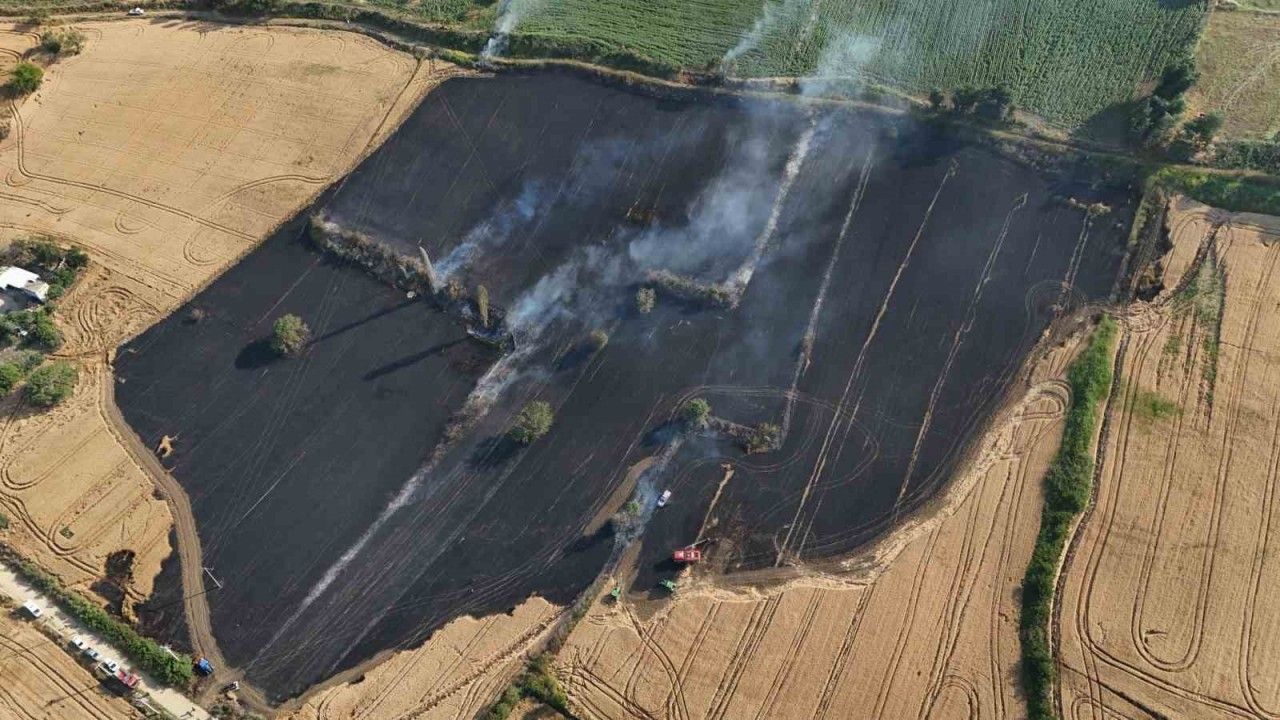Yangın ekiplerin havadan ve karadan müdahalesiyle kontrol altına alındı. Yangında yaklaşık 50 dönüm tarım arazisi zarar gördü.
