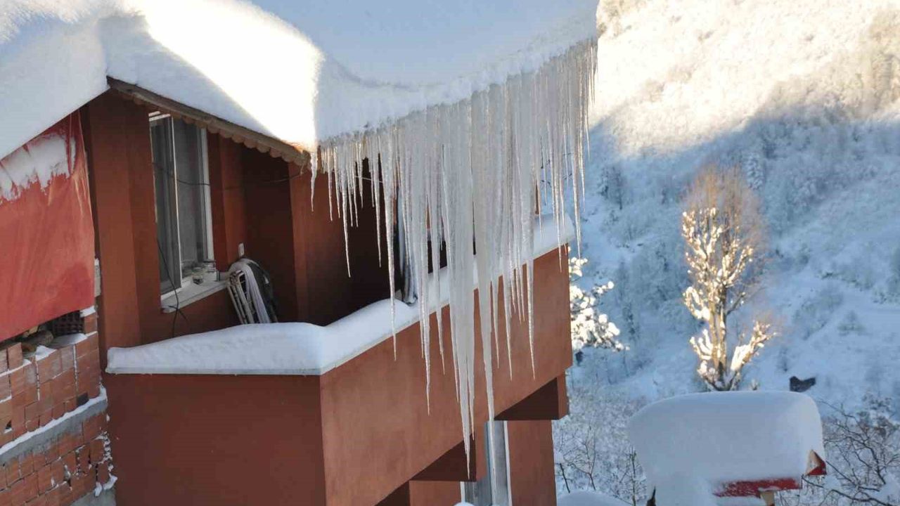 SAKARYA (İHA) – Sakarya’nın Hendek ilçesinde dondurucu hava sebebiyle evlerin çatılarında metrelerce buz sarkıtları oluştu. Karapürçek ilçesinde ise bir kişinin binanın çatısından düşen buz sarkıtının altında kalmaktan son anda kurtulduğu anlar güvenlik kamerasına yansıdı.