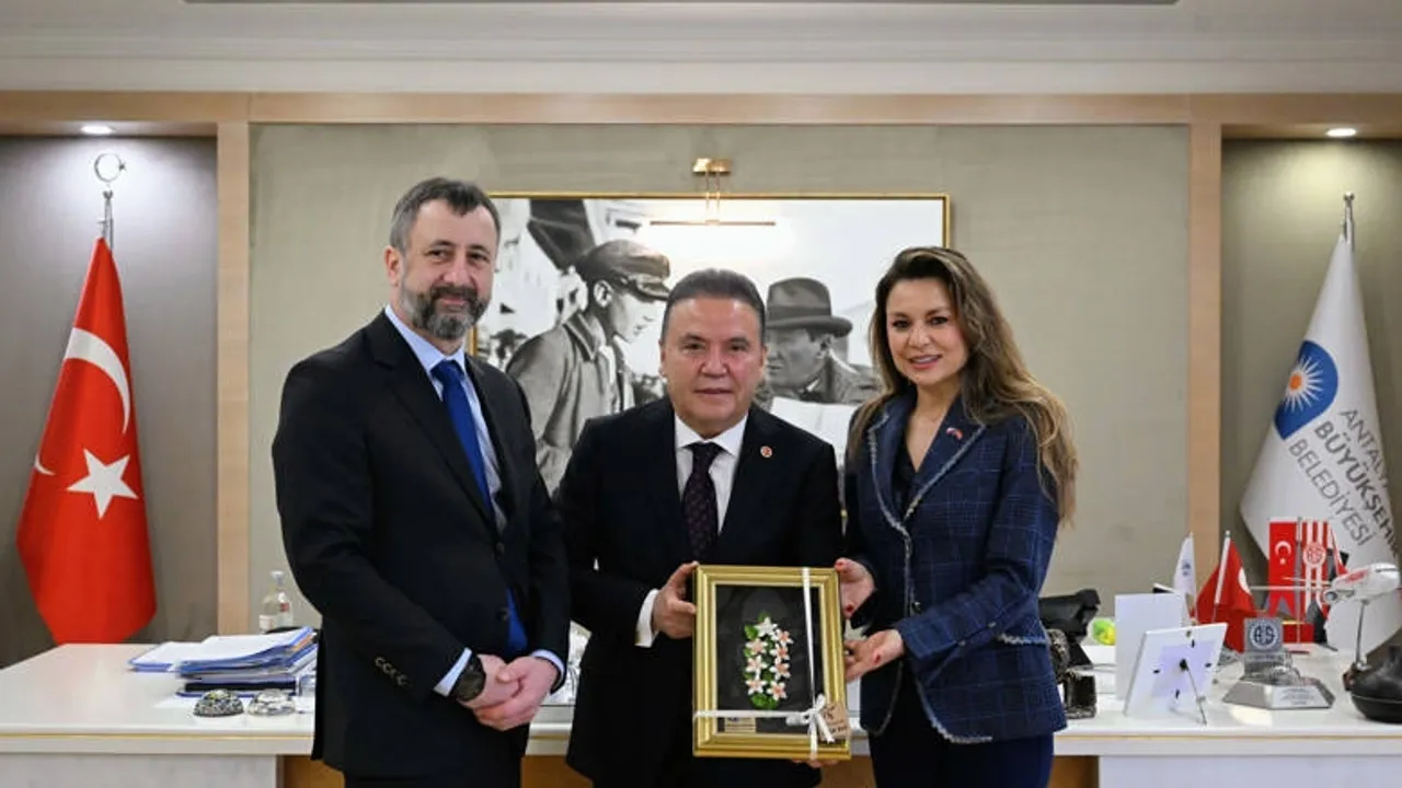 Antalya Büyükşehir Belediye Başkanı Muhittin Böcek, Çek Cumhuriyeti Ankara Büyükelçisi Petr Stepanek, Antalya Fahri Konsolosu Yeliz Gül Ege ile birlikte makamında görüştü. Çevreye duyarlı gelecek nesillere güzel bir Antalya bırakmak için çalıştıklarını söyleyen Başkan Muhittin Böcek, “İklim değişikliği dahil olmak üzere Türkiye’de ilk sırada olan bir belediyeyiz. Diğer kurumlarla birlikte işbirliği içerisinde güzel şeyler yapmaya çalıştık. Çevre ile ilgili çalışmalarımızla ulusal ve uluslararası birçok ödül almak bizim için bir onur oldu. Büyükelçiler ve fahri konsoloslarımızla birlikte Antalya Büyükşehir Belediyesi olarak kültür sanatla ilgili yapılması gereken çalışmaları yapıyoruz” dedi.