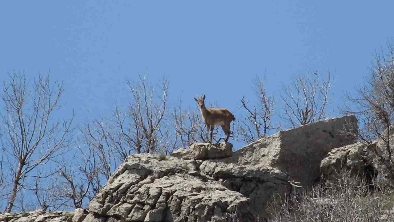 Diyarbakır'ın Çermik ilçesinde, nesli koruma altında olan dağ keçileri sürü halinde görüntülendi.