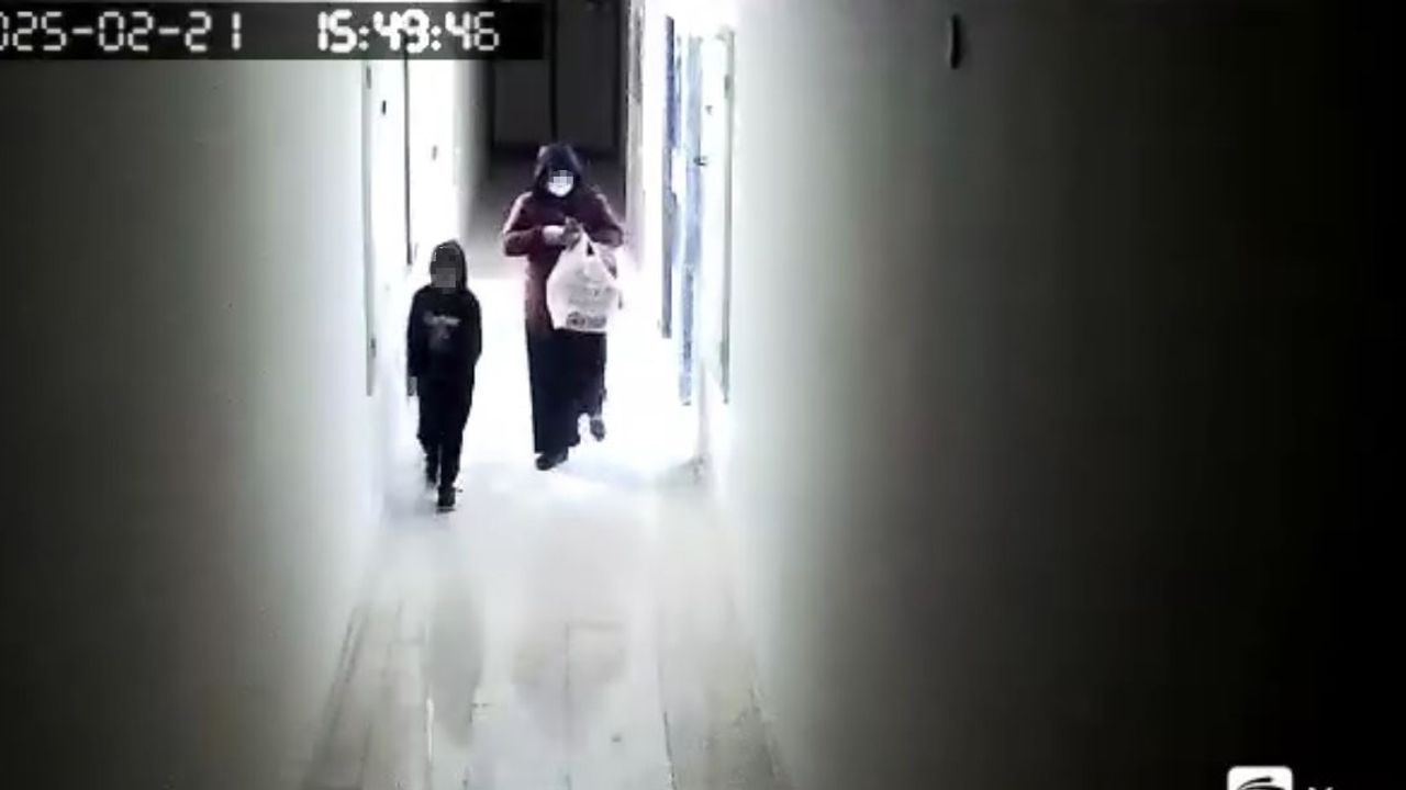 Mardin’in Nusaybin ilçesinde bir binaya giren hırsız, yanındaki küçük çocuğa aldırış etmeden kapı önündeki ayakkabıları poşete doldurarak çaldı.