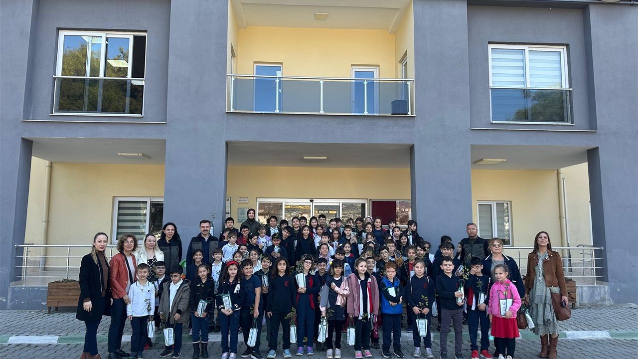 Tatbikatın ardından öğrencilere fidan dikimi uygulamalı olarak gösterildi ve her bir öğrenciye fidan hediye edildi.