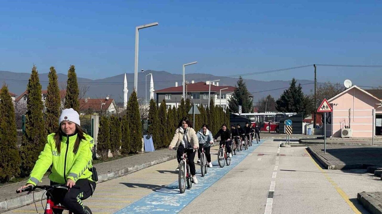Bolu’da trafik polisleri tarafından Çocuk Trafik Eğitim Parkı’nda bisikletlere bindirilen öğrenciler, trafik kurallarını uygulamalı şekilde öğreniyor.