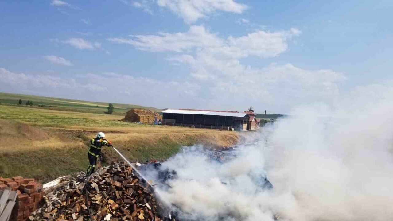 Olay, Alaca ilçesindeki ağaç pazarında meydana geldi. Edinilen bilgilere göre, Nihat Kılıç’a ait iş yerinin önünde istiflenen odunlar henüz bilinmeyen bir sebeple alev aldı. Yangını fark eden iş yeri sahibi durumu hemen 112 Acil Çağrı Merkezine bildirdi. İhbar üzerine olay yerine sevk edilen Alaca Belediyesi İtfaiye ekipleri, yangını çevredeki diğer iş yerlerine sıçramadan söndürdü. Yangında yaklaşık 7 ton odun ve kereste tamamen yanarak kullanılamaz hale geldi.