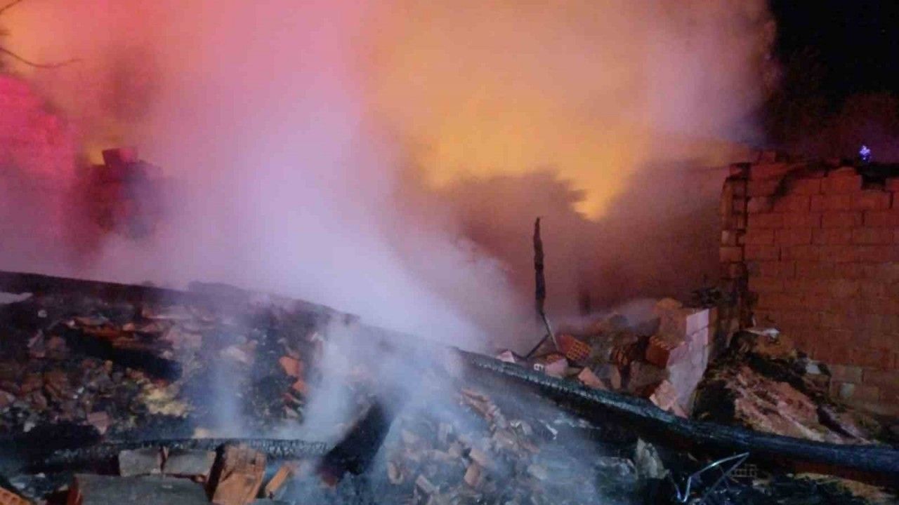 Çorum’un Alaca ilçesinde alevlere teslim olan ahır ile ardiyedeki 70 torba yem, 1 ton nohut, 5 ton arpa, 3 ton buğday zarar gördü.