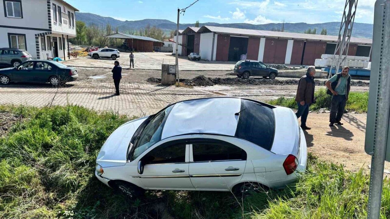Çorum’un Sungurlu ilçesinde menfeze düşen otomobilin sürücüsü yaralandı.