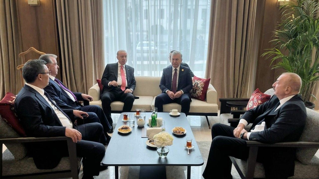 Ekonomik İşbirliği Teşkilatı (EİT) 17. Zirvesi, Azerbaycan’ın Hankendi şehrinde başlıyor. Cumhurbaşkanı Recep Tayyip Erdoğan, Fuzuli’de karşılanmasının ardından zirvenin yapılacağı Hankendi kentine geldi. Erdoğan, zirvenin yapılacağı Hankendi Kongre Merkezine gelişinde Azerbaycan Cumhurbaşkanı İlham Aliyev tarafından karşılandı. Erdoğan’ın yanı sıra diğer liderler de Aliyev tarafından tek tek karşılandı. Erdoğan ve zirveye katılan liderler karşılamanın ardından zirve öncesinde aile fotoğrafı çektirdi. Liderler daha sonra zirveye geçti.