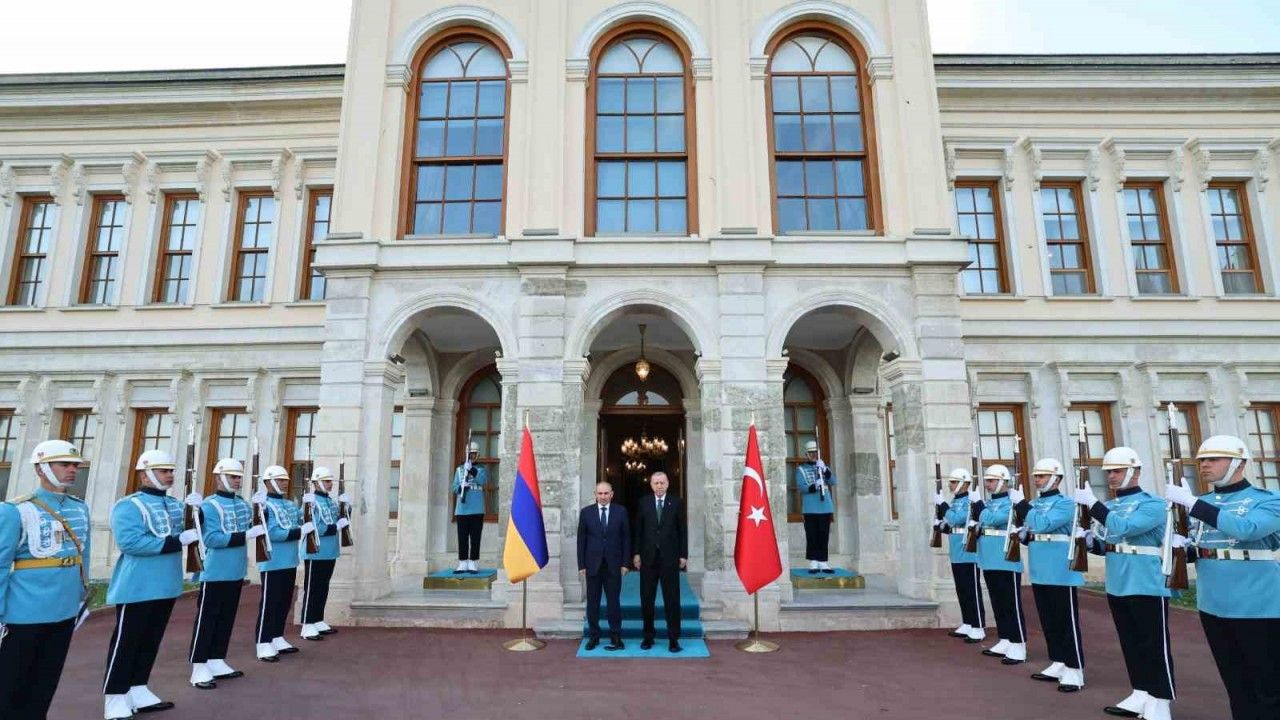 Cumhurbaşkanı Recep Tayyip Erdoğan, Ermenistan Başbakanı Paşinyan’ı Beşiktaş’taki Cumhurbaşkanlığı Dolmabahçe Çalışma Ofisi’nde resmi törenle karşıladı. Tören sonrası Cumhurbaşkanı Erdoğan ile Paşinyan birbirlerine heyetlerini takdim ederek görüşmeye geçti.