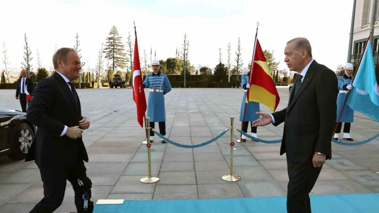 Cumhurbaşkanı Erdoğan, Polonya Başbakanı Tusk’ı Cumhurbaşkanlığı Külliyesinde resmi törenle karşıladı. Türkiye ve Polonya bayrakları önünde basın mensuplarına poz veren Cumhurbaşkanı Erdoğan ile Polonya Başbakanı Tusk, daha sonra baş başa görüşmeye geçti.