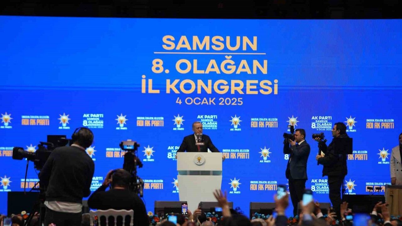 Daha sonra Cumhurbaşkanı Recep Tayyip Erdoğan, Samsun’daki kongre salonuna son günlerce Gassal dizisiyle yeniden ünlenen Ferdi Tayfur’un yazdığı ve Şahin Kendirci’nin seslendirdiği “İçim Yanar” şarkısı ile çıktı. Erdoğan sahneye çıktığında ise “Men dakka dukka, eden bulur”, “Başkomutan Recep Tayyip Erdoğan” ve “Özgür Filistin İçin Sözümüz Var” pankartları açıldı. Cumhurbaşkanı Erdoğan konuşmasına hayatını kaybeden ünlü sanatçı Ferdi Tayfur’a Fatiha okuduktan sonra başladı.