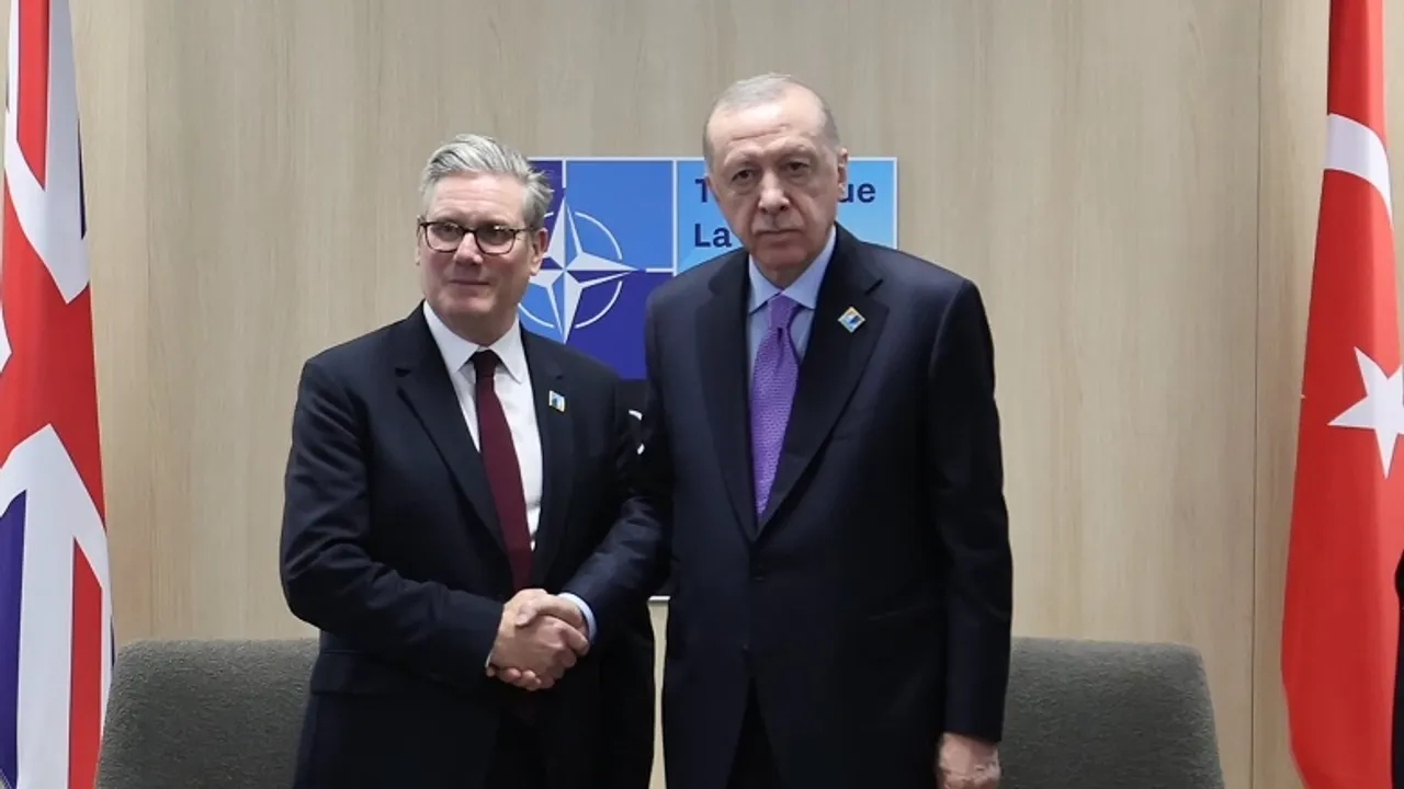 Cumhurbaşkanı Recep Tayyip Erdoğan, NATO Devlet ve Hükûmet Başkanları Zirvesi için bulunduğu Lahey’de İngiltere Başbakanı Keir Starmer’ı kabul etti.ANKARA (İGFA) - Cumhurbaşkanı Erdoğan kabulde, Türkiye ile İngiltere arasındaki ticaret hacmini 30 milyar dolar seviyesine çıkartma hedefiyle ilişkileri geliştirmeye devam edeceklerini, savunma sanayii başta olmak üzere her alanda iş birliğini artırmak için çalıştıklarını ifade etti.