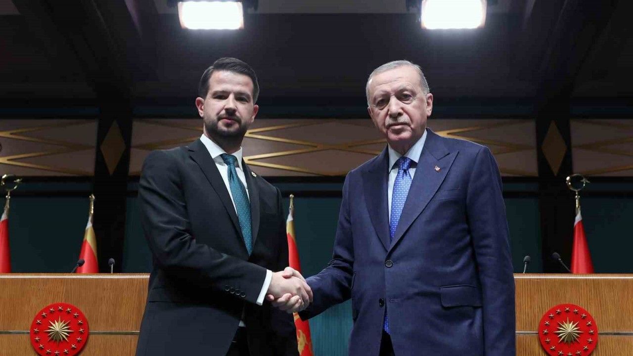 Cumhurbaşkanı Recep Tayyip Erdoğan, Cumhurbaşkanlığı Külliyesi’nde Karadağ Cumhurbaşkanı Jakov Milatoviç ile ortak basın toplantısı gerçekleştirdi. Cumhurbaşkanı Milatoviç ve heyetini Ankara’da ağırlamaktan büyük bir memnuniyet duyduğunu ifade eden Cumhurbaşkanı Erdoğan, bu sene Türkiye-Karadağ arasındaki diplomatik ilişkilerin 145’inci yıl dönümü olduğunu hatırlattı. Karadağ ile bu ortak geçmişte siyasi ekonomik ve kültürel temelleri sağlam kapsamlı işbirlikleri olduğunu aktaran Erdoğan, Milatoviç ile görüşmelerinde ikili münasebetleri kapsamlı şekilde ele aldıklarını bildirdi. Görüşmede önümüzdeki dönemde atılacak adımları da değerlendirdiklerini belirten Cumhurbaşkanı Erdoğan, “Münasebetlerimize kurumsal çerçeve kazandırmak amacıyla Yüksek Düzeyli Strateji
