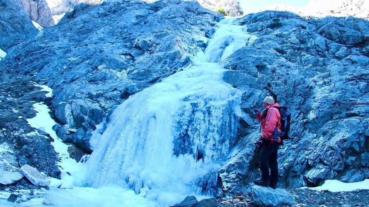 Denizli’de aşırı soğuk hava nedeniyle yüksek kesimlerdeki şelaleler buz tuttu.