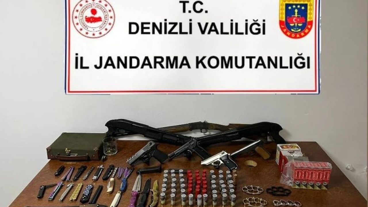 Edinilen bilgiye göre; Denizli İl Jandarma Komutanlığı ekipleri, il genelinde silah ve mühimmat kaçakçılığının yönlenmesine yönelik olarak Denizli Cumhuriyet Başsavcılığı koordinesinde başlatılan soruşturma kapsamında belirlenen adreslere eş zamanlı operasyonlar düzenledi. Silah ve mühimmat kaçakçılığına karıştığı belirlenen şüphelilere yönelik icra edilen operasyonlarda 3 adet ruhsatsız tabanca, 1 adet kuru sıkı tabanca, 300 adet tabanca fişeği, 5 adet şarjör, 2 adet ruhsatsız pompalı tüfek, 1 adet ruhsatsız av tüfeği, 96 adet av tüfeği fişeği, 10 adet sustalı bıçak, 10 adet sallama bıçak, 4 adet muşta ve 1 adet pala ele geçirildi. Ele geçirilen malzemeler muhafaza altına alınırken, şüpheli şahıslar hakkında adli işlem başlatıldı.