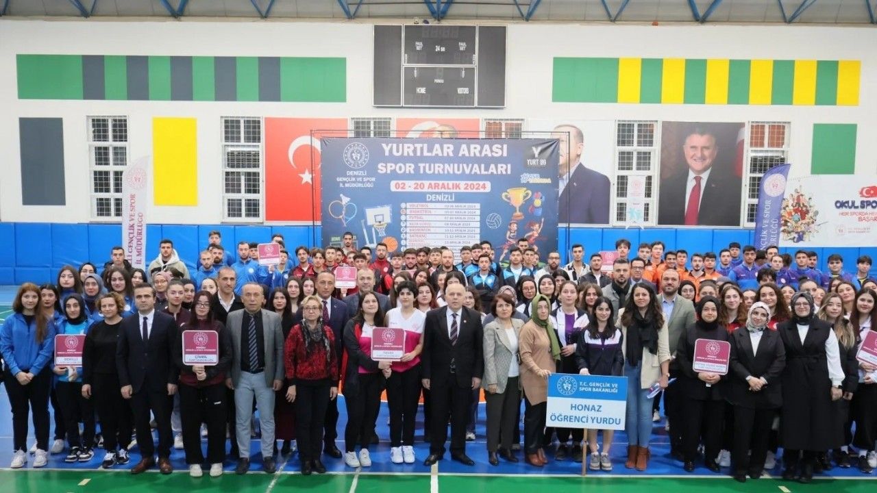 Gençlik Spor Bakanlığı yurtlarında kalan öğrencilerin katılımıyla 02-20 Aralık 2024 tarihleri arasında on branşta gerçekleşecek Yurtlararası Spor Oyunlarının açılış seremonisi Kınıklı Spor Salonunda gerçekleşti.