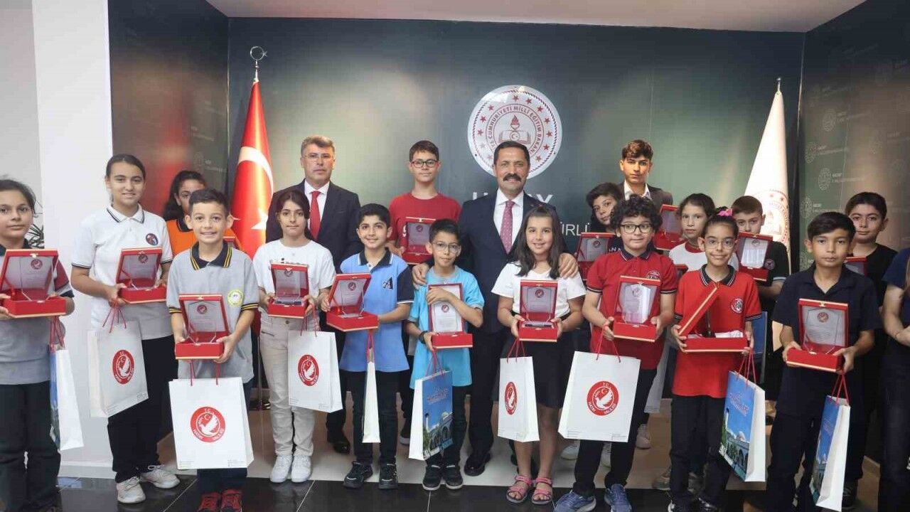 Depremin yaralarının sarıldığı Hatay’da bursluluk sınavından 500 tam puan almayı başaran 16 öğrenci, Vali Mustafa Masatlı tarafından ödüllendirildi. Sınavdan 500 tam puan alan öğrenci Alper Dayan, büyüdüğünde uzaya giden ilk Türk Alper Gezeravcı gibi uzaya çıkmak istediğini söyledi.
