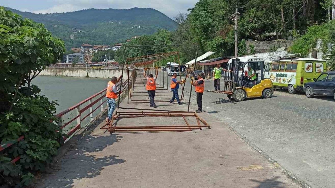 Zonguldak’ın Devrek ilçesinde belediye tarafından her yıl geleneksel olarak hayata geçirilen alışveriş stantlarının montajlarına başlandı.