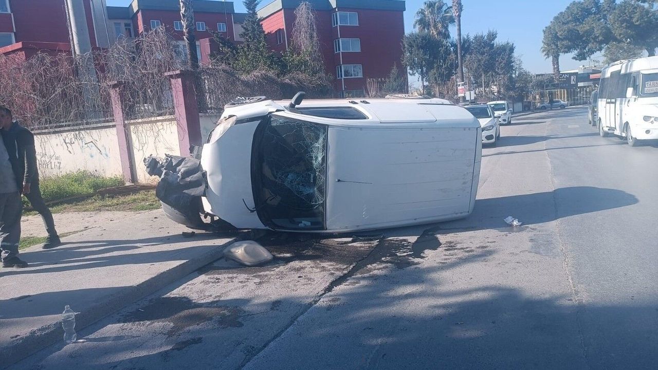 Mersin’in Tarsus ilçesinde hafif ticari aracın duvara çaraparak devrilmesi sonucu sürücü yaralandı.