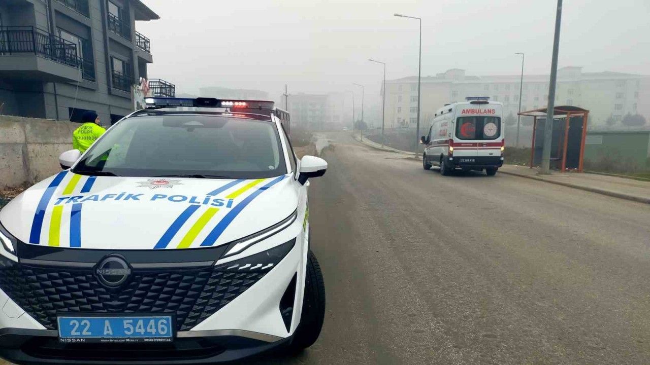 Edirne’de kaygan zeminde devrilen motosikletteki 2 kişi kazayı yara almadan atlattı.