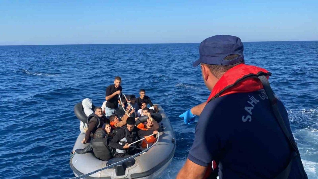 Aydın’ın Didim ilçesi açıklarında arızalanan lastik bot içerisindeki 11 düzensiz göçmen kurtarıldı.