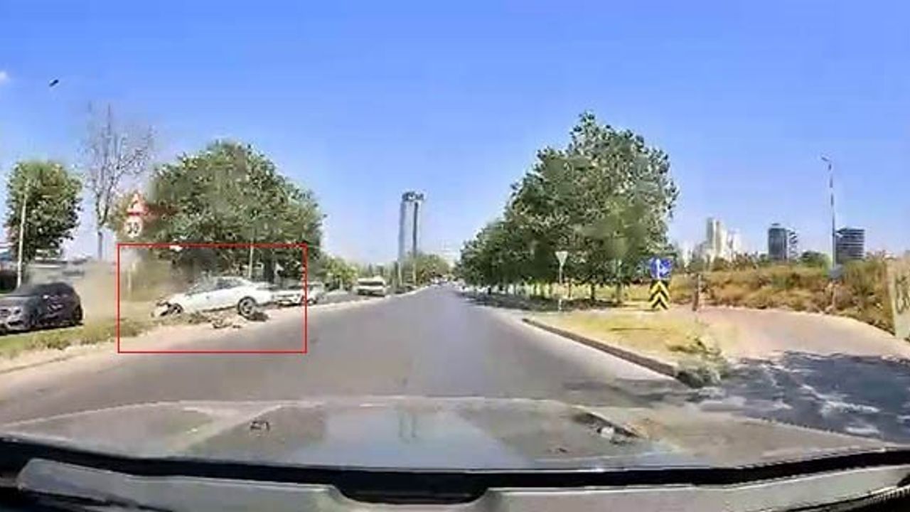 Sürücü hafif sıyrıklarla olayı atlatırken yaşanan kaza anı başka bir aracın kamerasına saniye saniye yansıdı.