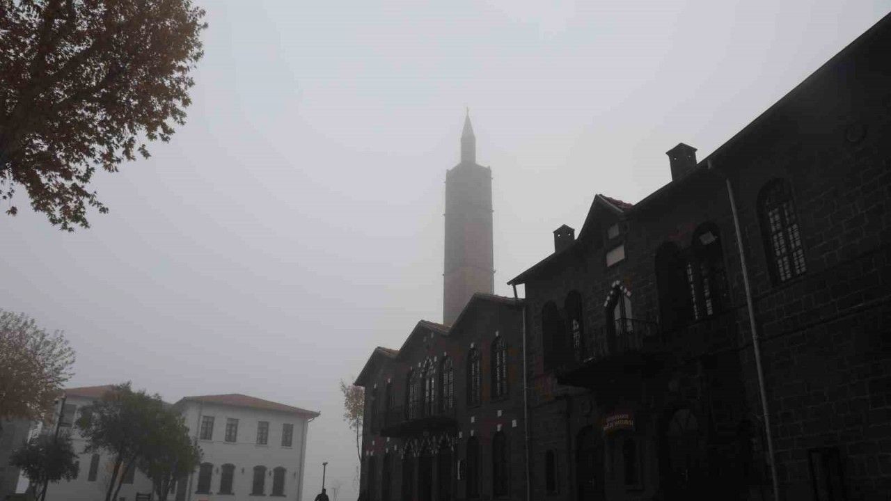 Diyarbakır’da tarihi mekanlar sis ile bütünleşirken trafikte ise görüş mesafesi yer yer 30 metrelere kadar düştü.