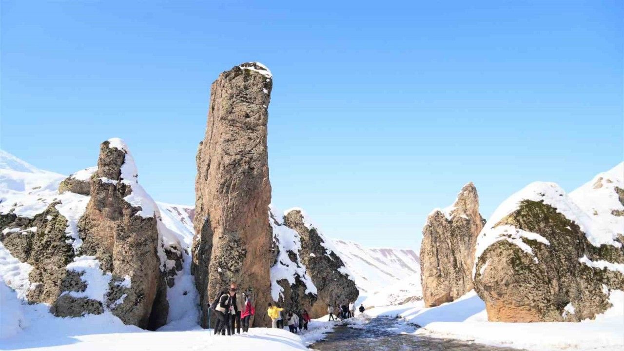 Muş’ta bir araya gelen doğaseverler, Kızılağaç Kanyonu’nda gerçekleştirdikleri doğa yürüyüşüyle bölgenin karla kaplı eşsiz manzarasını tanıttı.