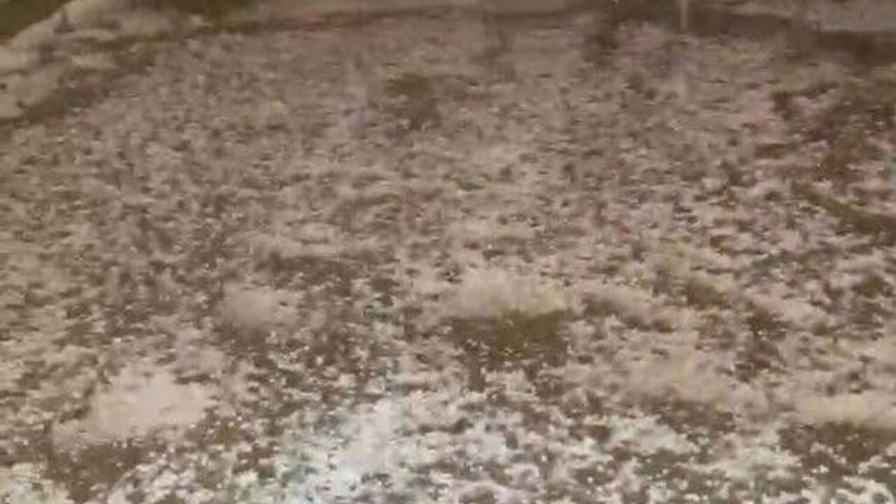 Gümüşhane’nin Kelkit ilçesinde aniden bastıran dolu yağışı, ilçeyi ve tarım arazilerini beyaza bürüdü.