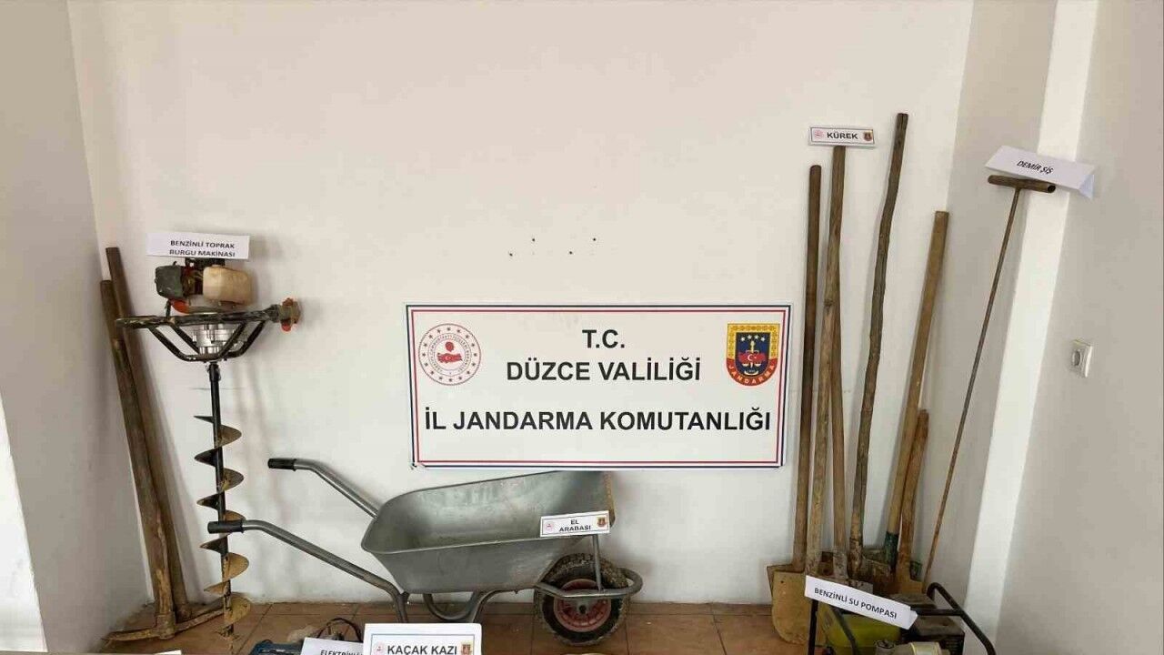 Evde yapılan aramada; 1 elektrikli vinç, 1 benzinli su pompası 1 toprak burgu makinası, 1 el arabası, 2 adet 4 metrelik merdiven, 2 kazma, 2 çapa, 4 kürek, 1 adet 2 metre uzunluğunda demir şiş ve 30 metre uzatma kablosu ele geçirildi. Konu ile ilgili adli tahkikat başlatıldı.