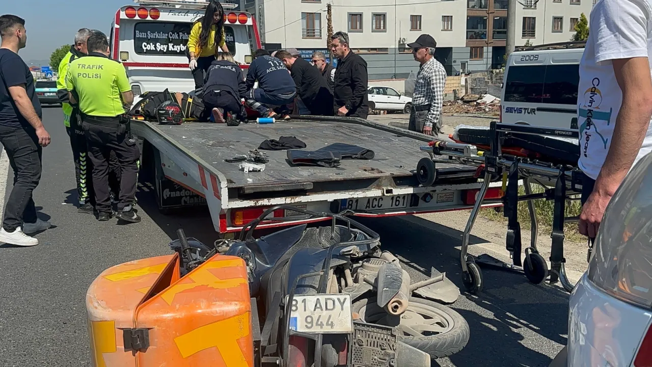Çarpışmanın etkisiyle motosiklet sürücüsü çekicinin üzerine savruldu.