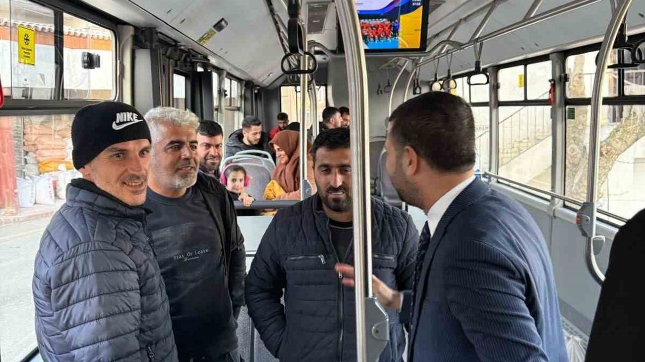 Eğil Belediye Başkanı Fırat Seydaoğlu, bindiği halk otobüsünde vatandaşlarla sohbet ederek sorunlarını dinledi.