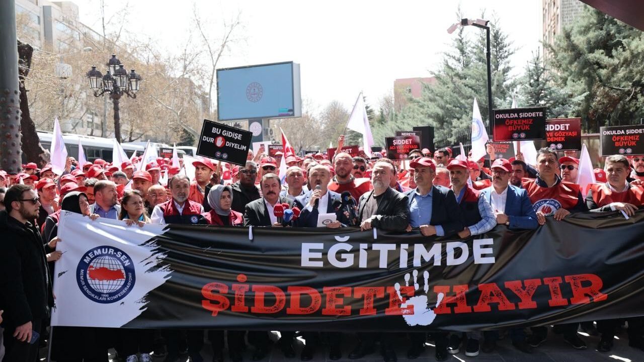 Eğitim-Bir- Sen üyeleri, Şanlıurfa'nın Siverek ilçesindeki Ahmet Koyuncu Mesleki ve Teknik Anadolu Lisesi'nde okulun eski bir öğrencisi tarafından gerçekleştirilen saldırıyı protesto etmek amacıyla Milli Eğitim Bakanlığı önünde toplandı. Grup adına açıklama yapan Eğitim-Bir-Sen Genel Sekreteri Talat Yavuz, eğitimcilere yönelik saldırılar ve bu saldırılara karşı alınması gereken önlemlere ilişkin konuştu.