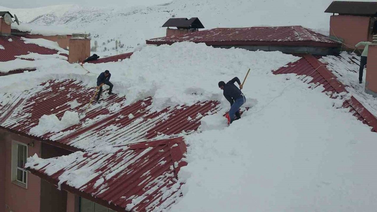 Bitlis’te son zamanlarda çetin geçen kış mevsiminde aile bütçelerine katkı sağlamak isteyen kar temizleyicileri metrelerce yükseklikteki çatılarda biriken karı temizliyorlar.