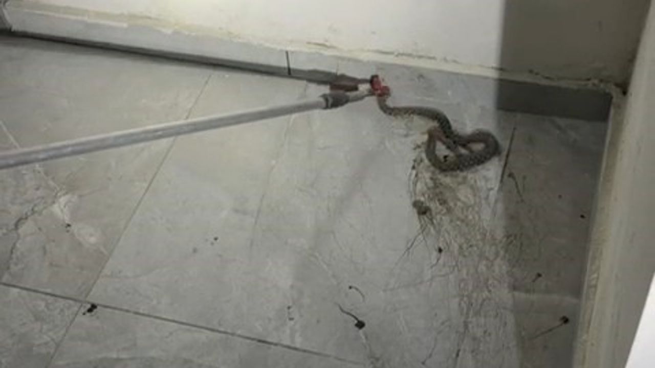 Elazığ’da bir apartmana giren yılan, kat sakinlerine korku dolu anlar yaşattı.