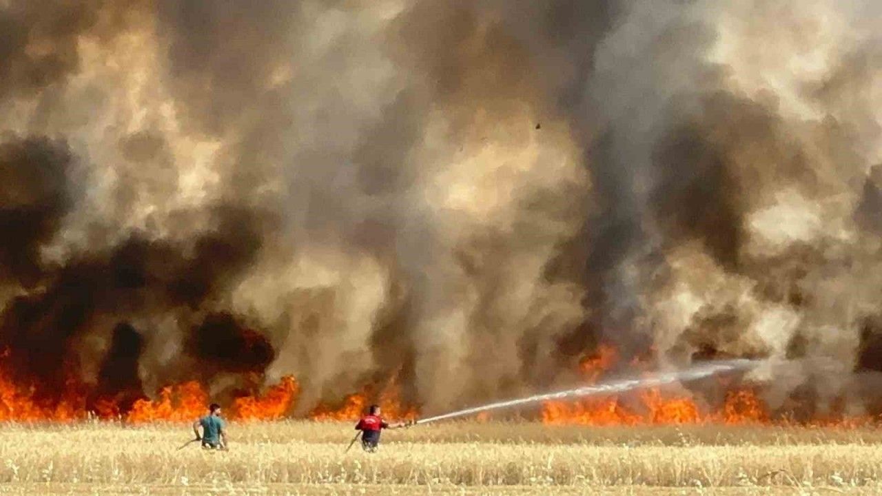 Elazığ merkez Yazıkonak beldesinde ekili alanda çıkan yangın nedeni ile onlarca dönüm alanda ekili hububat kül oldu.