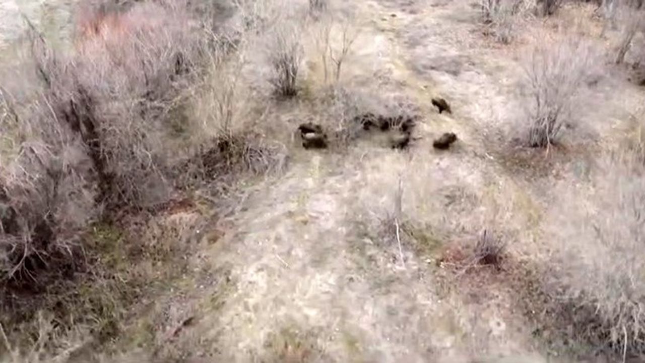 Elazığ’da domuz sürüleri dron ile görüntülendi.