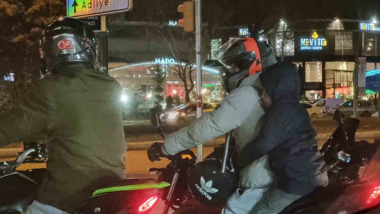 Olay dün akşam saatlerinde Hazar Dağlı Kavşağında yaşandı. Kasklı bir motosiklet sürücüsü, çocuk yaştaki bir kişiyi arkasına alıp kask giydirmeden trafiğe çıktı. Trafikte sürücüye sımsıkı sarılan çocuğu görenler, duruma tepki gösterdi. Motosiklet sürücüsü ve çocuk, bir süre sonra gözden kayboldu.